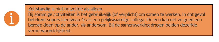 Tijdens het leren doorloopt de PIO/student verschillende supervisieniveaus om uiteindelijk voor een EPA bekwaam te worden. De startsituatie kan voor iedere PIO/student anders zijn. Wanneer iemand al ervaring heeft opgedaan op een andere afdeling kan de EPA ook gestart worden op supervisieniveau 2 of 3 bijvoorbeeld. Om voor een EPA bekwaam verklaard te worden moet een PIO/student minimaal niveau 4 behaald hebben.